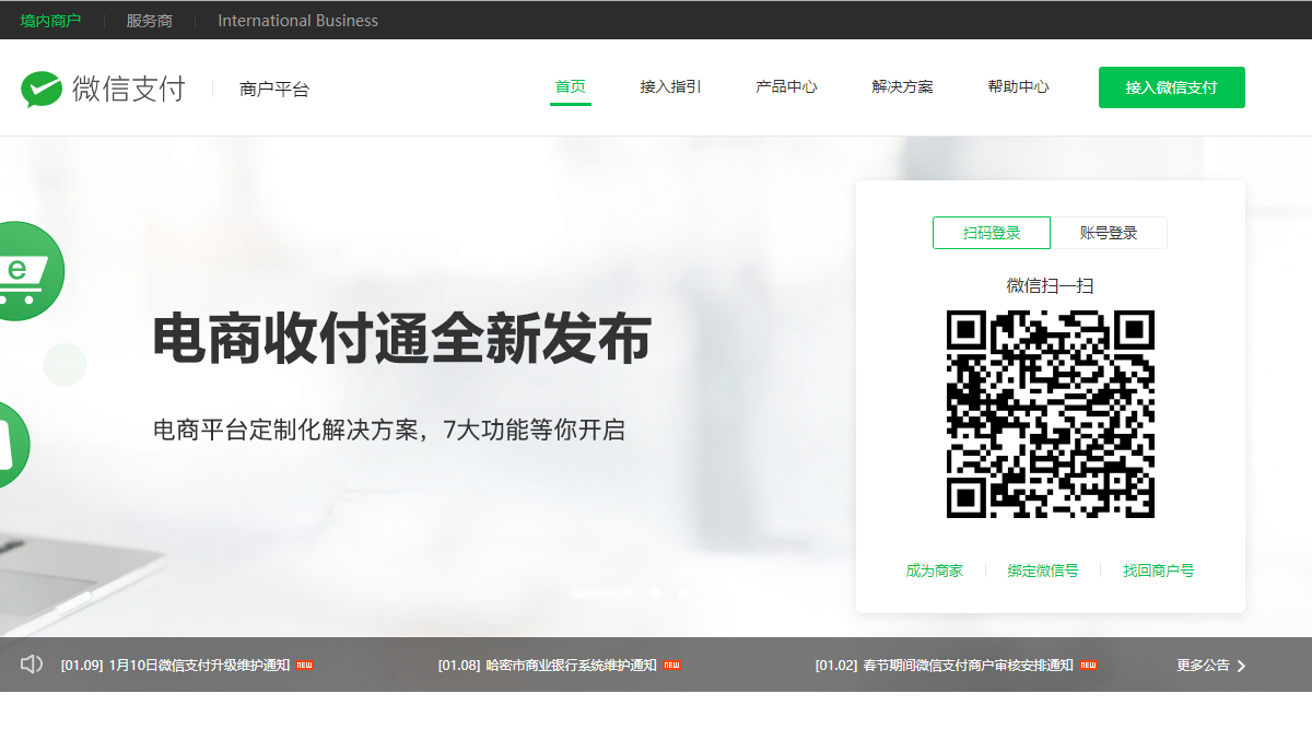 5.进入微信商户平台(网址:https://pay.weixin.qq.com/)