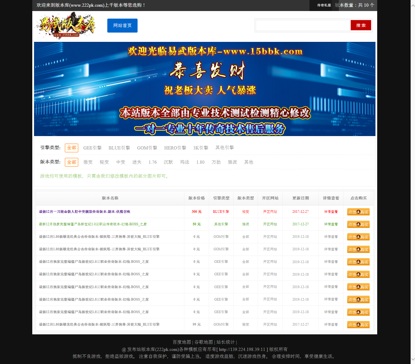 游戏版本库程序模板,支持传奇,神途,传世,魔域,天龙,诛仙,征途,魔兽,完美,冒险岛等
