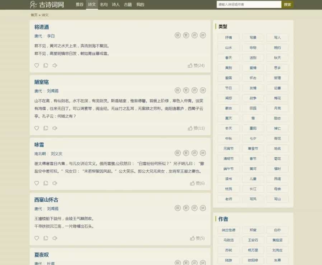 帝国cms自适应古诗词网古籍名句网站,古诗名句古诗大全源码,全套源码 整站源码带后台带采集规则,自适应手机移动端,带语音播放,转换繁体,古文翻译,注拼音等功能,更多功能请看演示站。可以做一个古诗大全,古诗词名句,古诗词鉴赏,名诗名句大全,古诗词三百首,唐诗大全,宋词名句,
