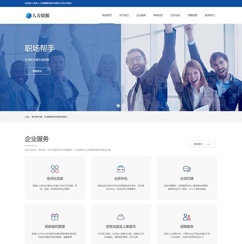 人力资源服务类网站pbootcms模板