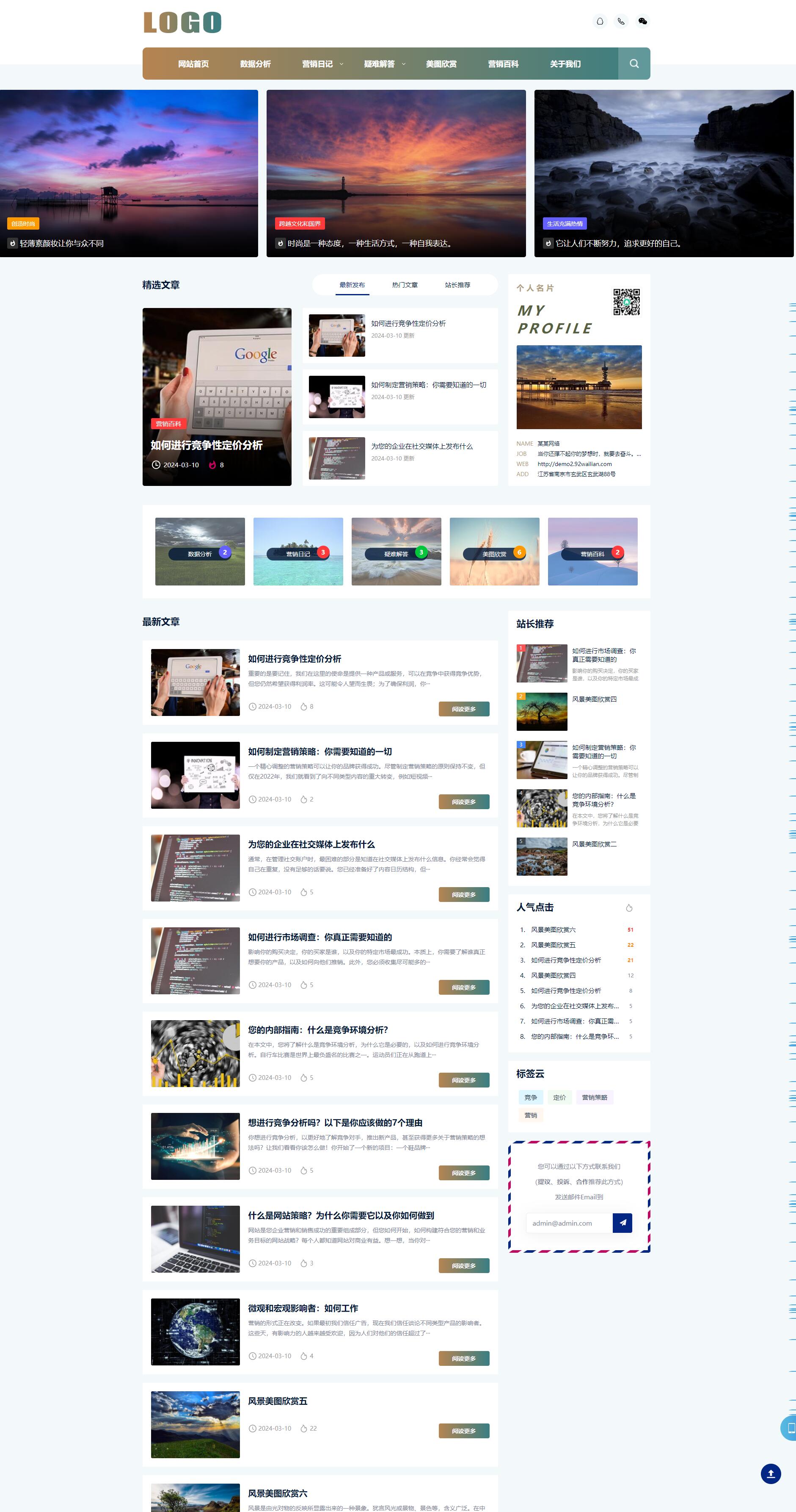营销技术个人博客网站模板