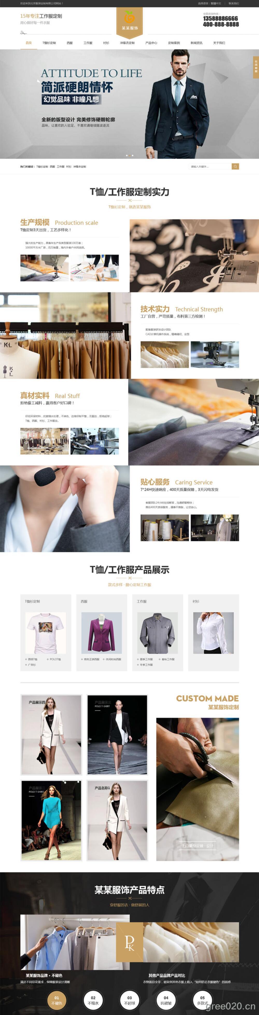 服装服饰网站模板 西装工装校服定制网站源码下载
