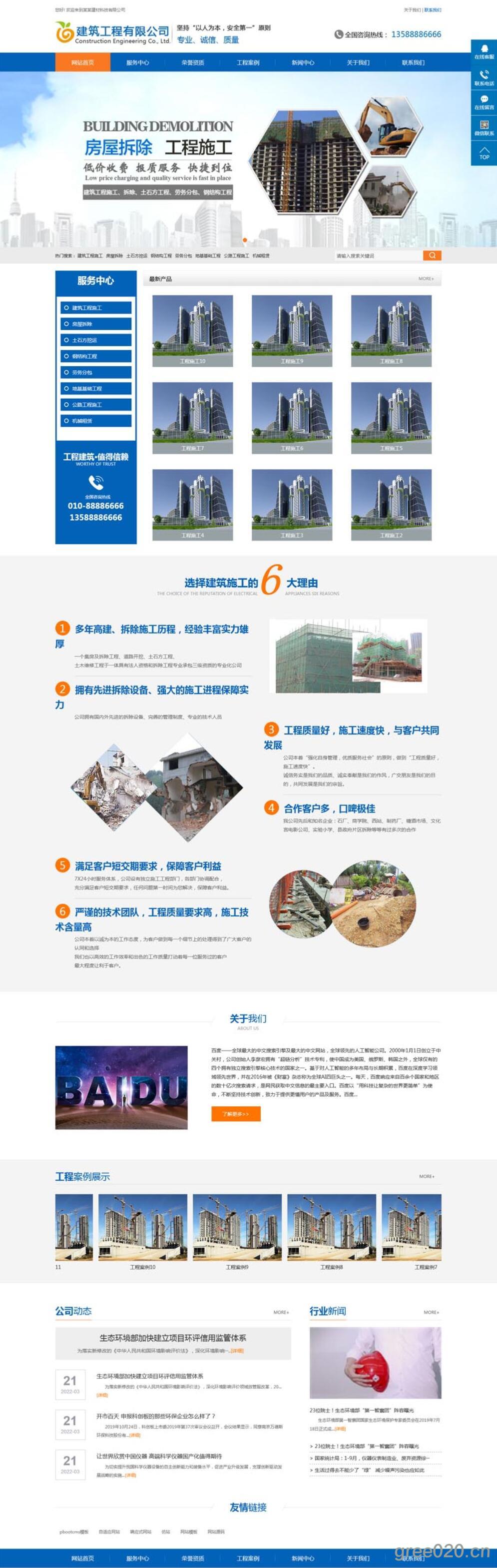 营销型建筑工程施工网站模板 蓝色工程建筑网站源码下载
