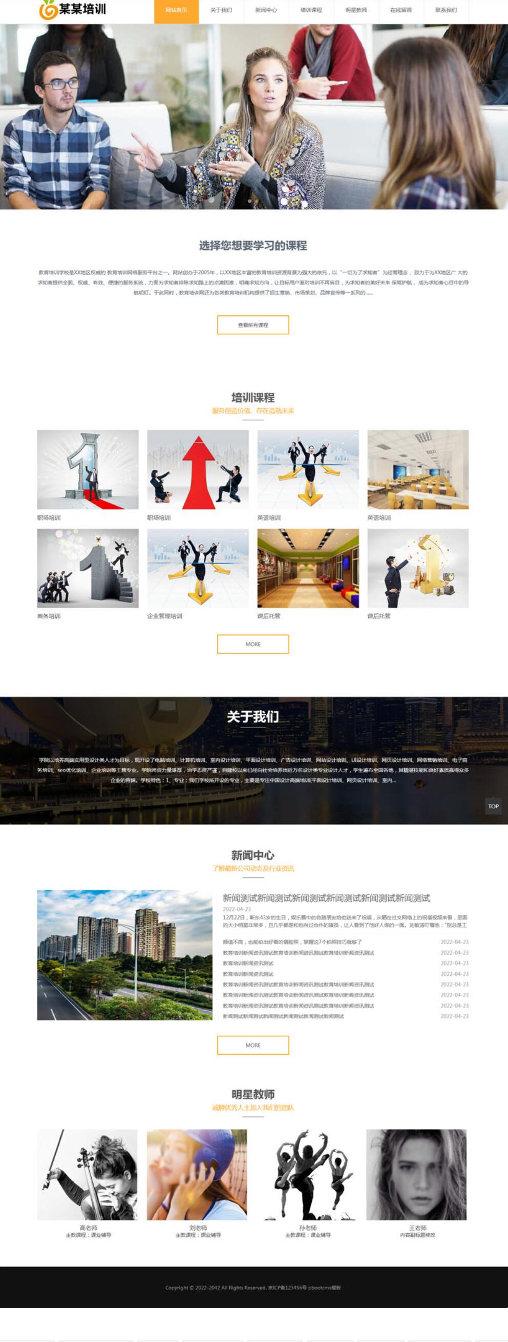 商务网络教育培训服务类网站模板 简洁学校托管课程辅导网站源码下载