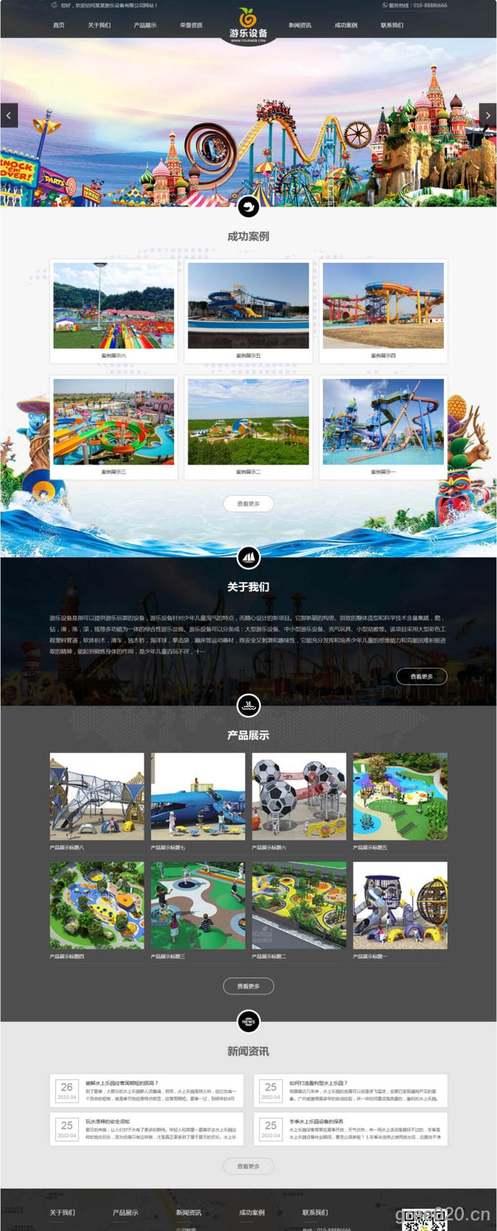 水上游乐园设备网站模板,娱乐设备设施网站源码下载