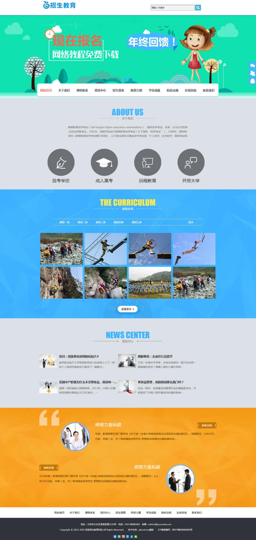 院校招生远程教育类网站模板,学历提升培训服务网站源码下载