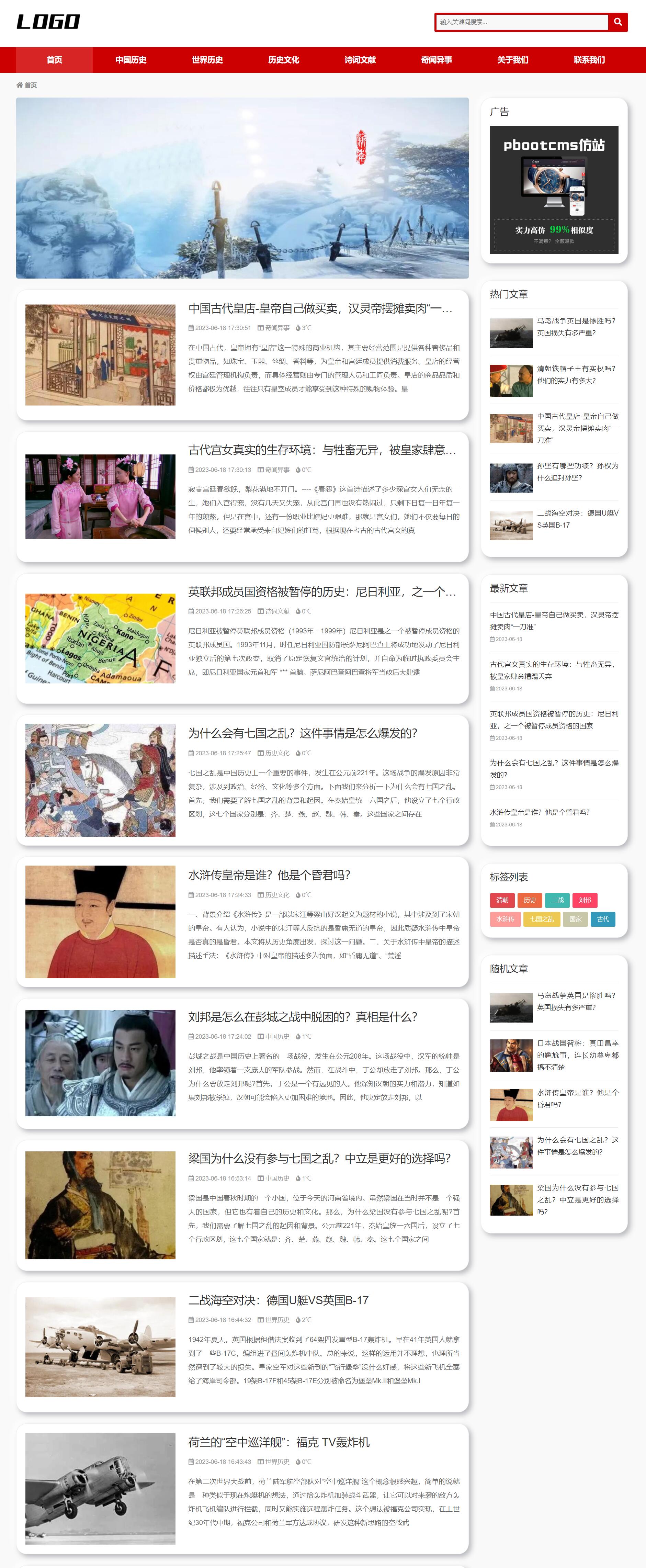 历史资讯类pbootcms网站模板 奇闻异事网站源码下载