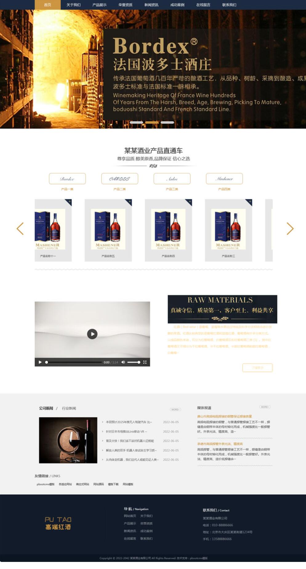 高端品牌红酒酒业类pbootcms网站模板,葡萄酒酒庄酒水销售网站源码下载
