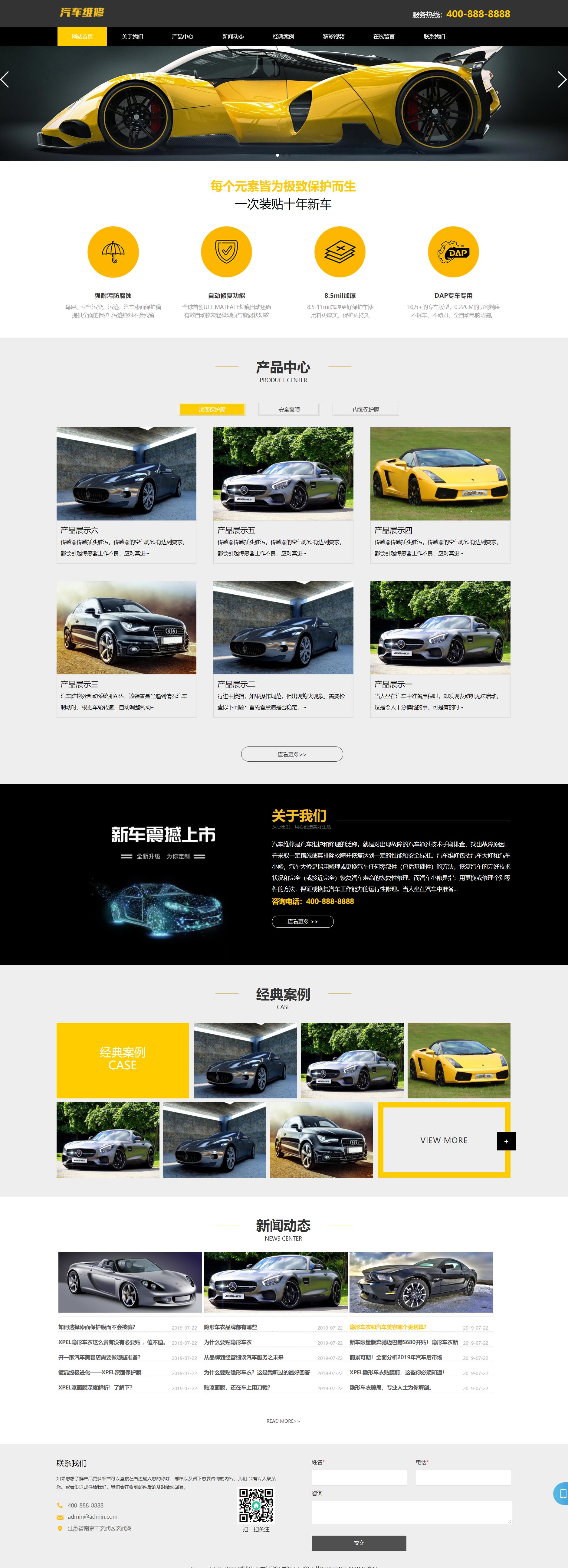 汽车美容维修贴膜工厂网站pbootcms模板 4S汽车维修店网站源码下载
