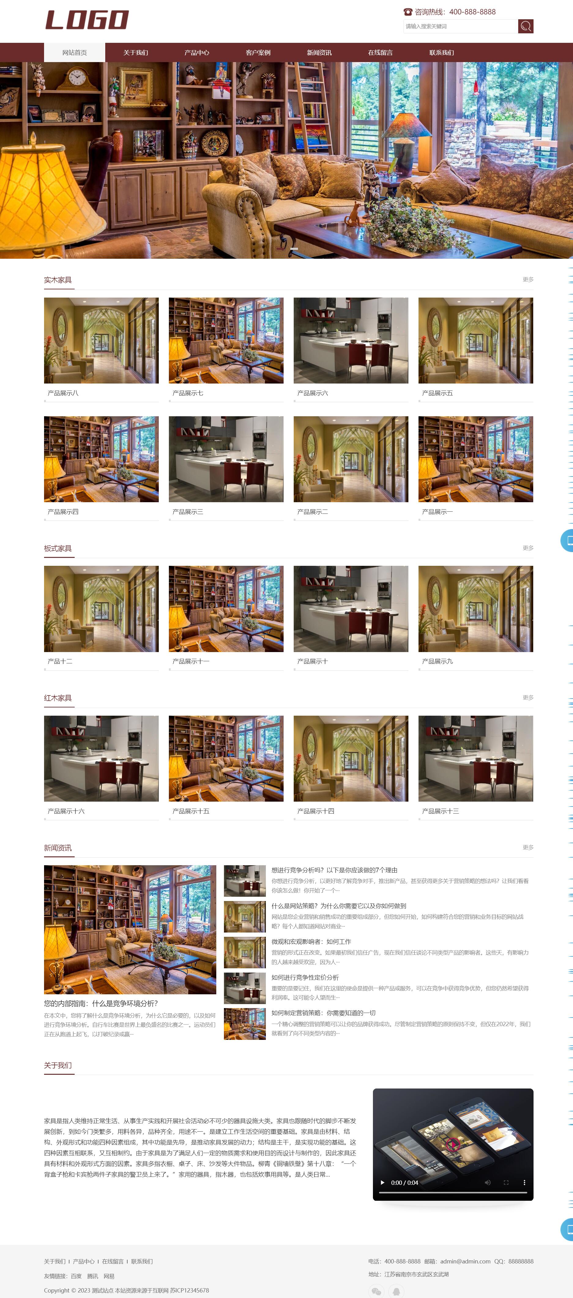 棕色家具装修pbootcms网站模板 响应式家具建材类网站源码下载