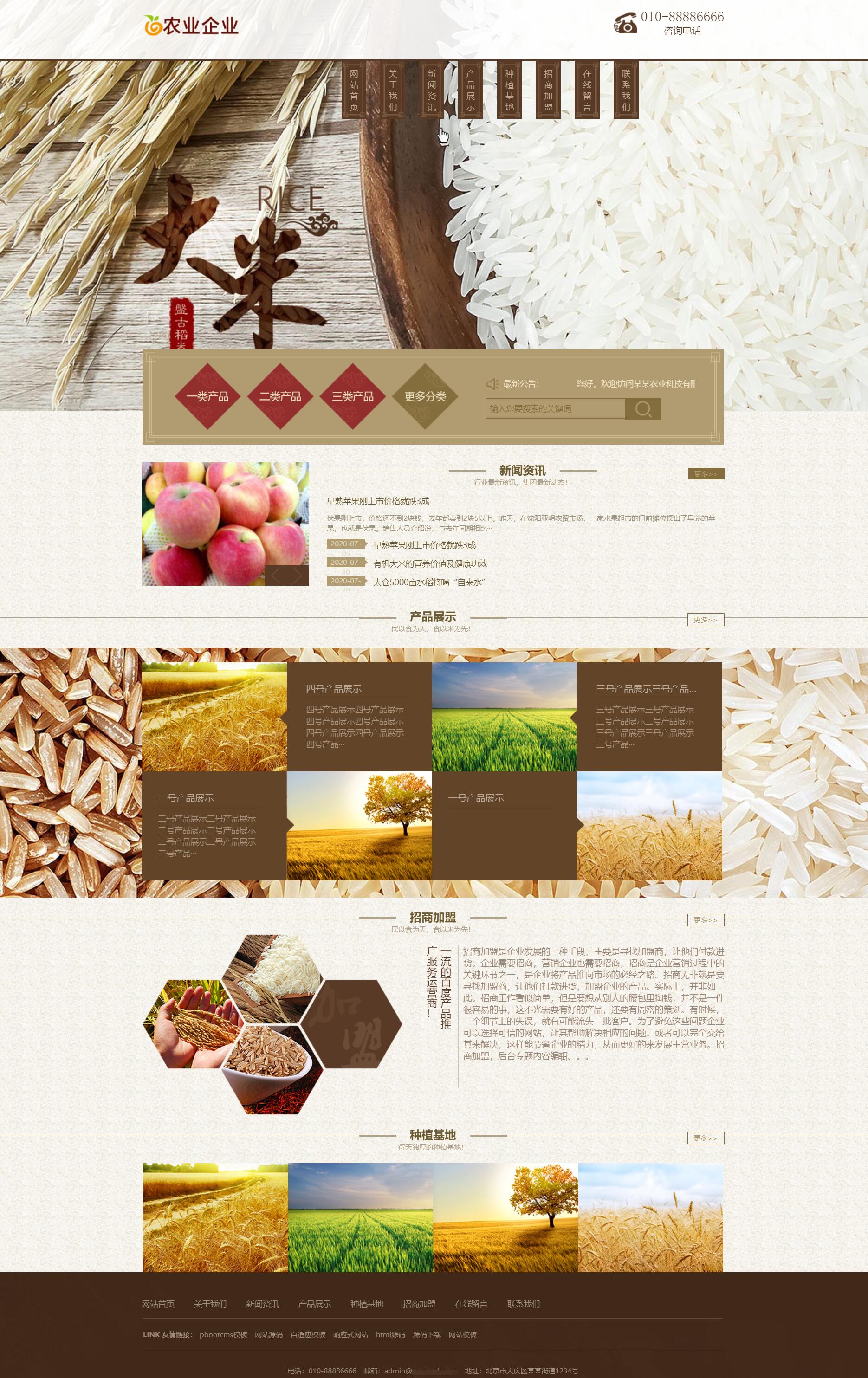 大米农作物谷类pbootcms网站模板 粮食农产品网站源码下载
