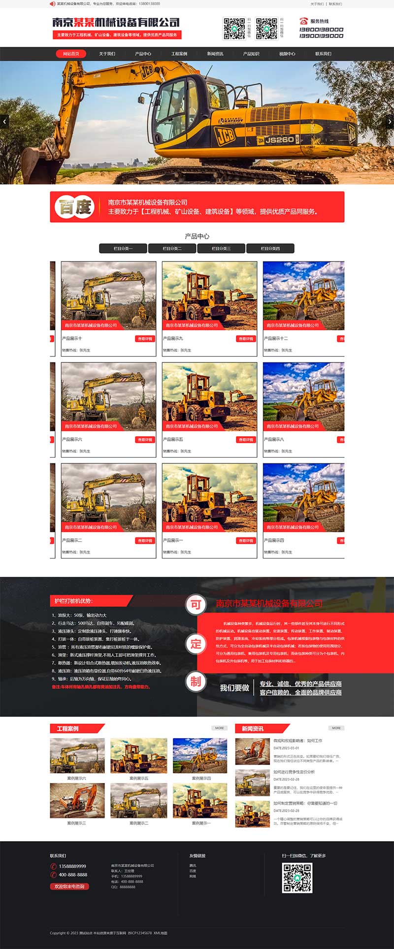 红色大气的机械设备网站pbootcms模板 重工工业设备网站源码下载