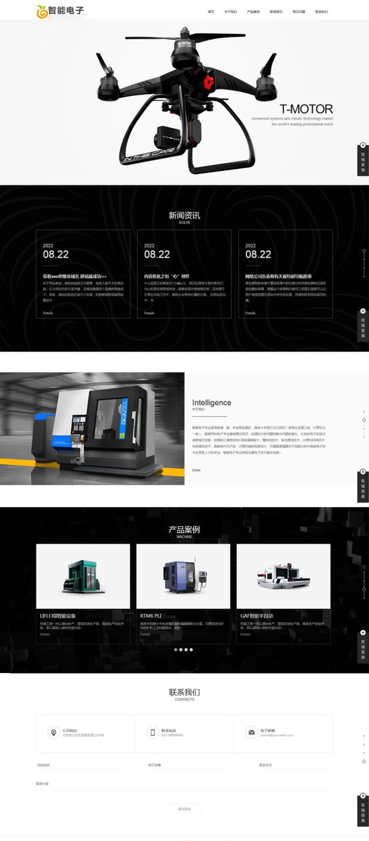 全屏滚动智能电子机械设备pbootcms网站模板 高端创意展示网站源码下载