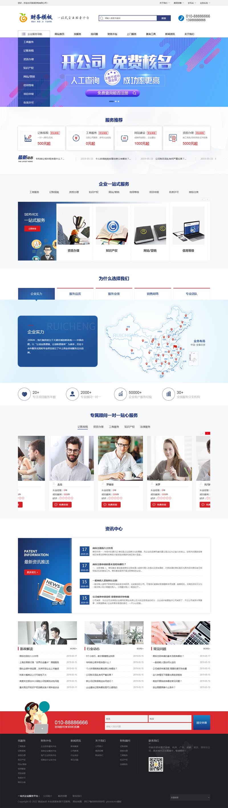 财务公司工商服务审计代理类pbootcms网站模板 公司注册财会税务筹划网站源码下载