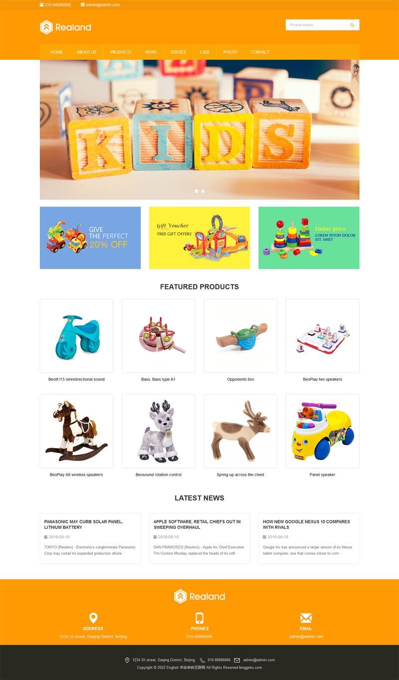 儿童玩具英文外贸公司网站pbootcms模板 百货进出口贸易网站源码下载