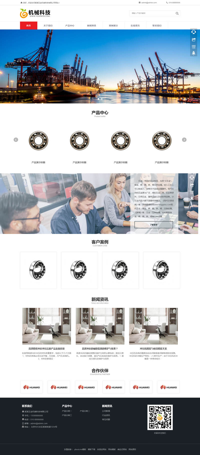 轴承配件公司pbootcms网站模板 精密仪器加工五金配件源码下载