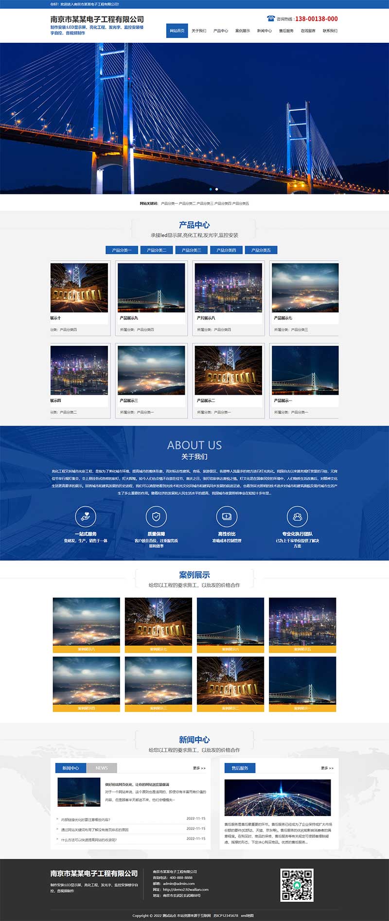 蓝色大气楼宇亮化工程pbootcms网站模板