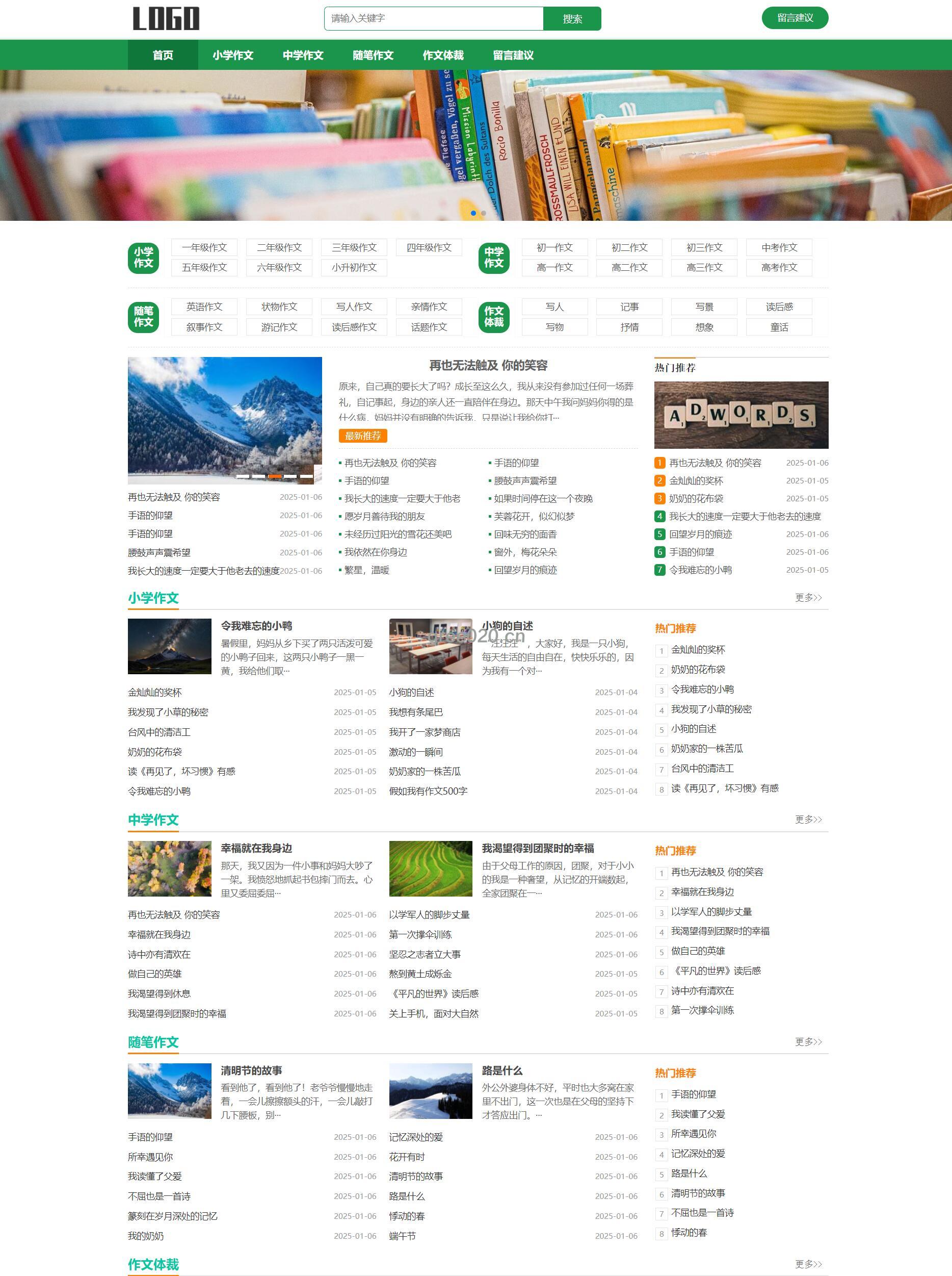 随笔作文网站模板 美文网站源码下载