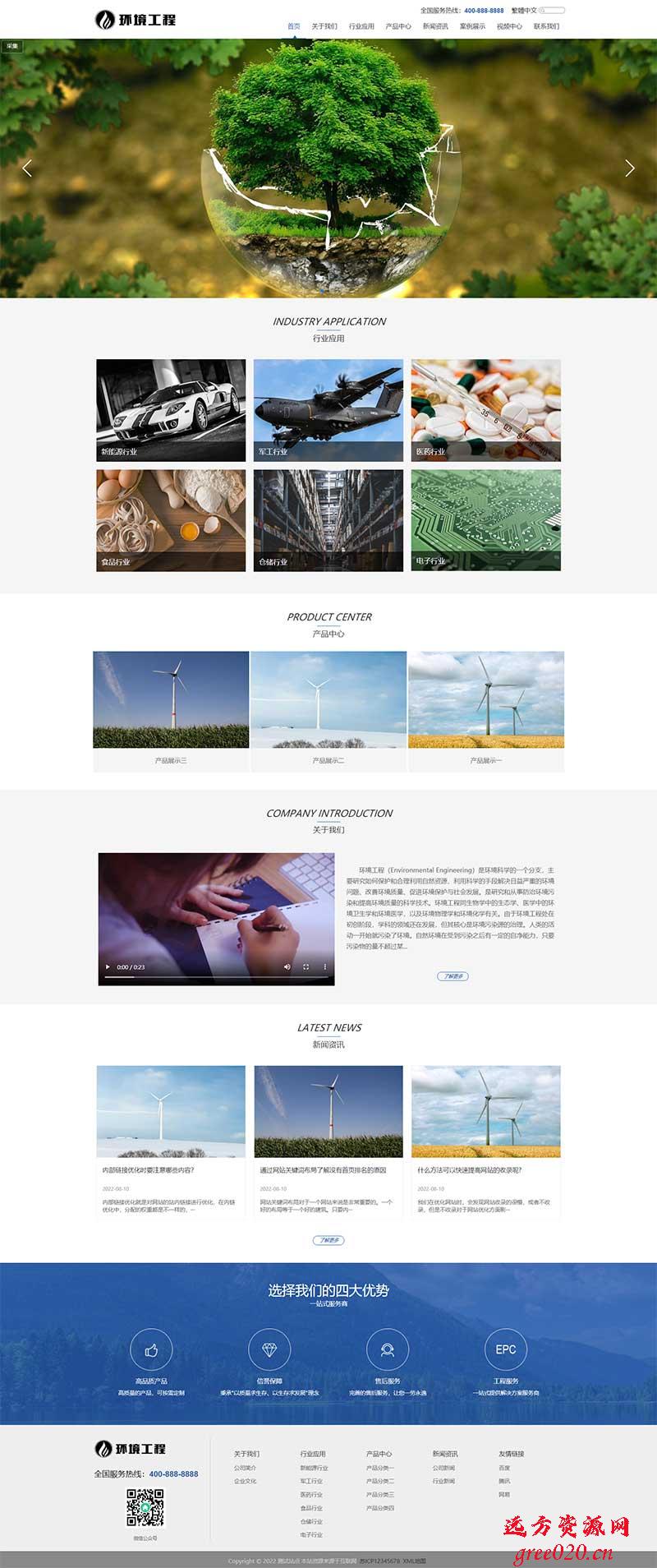 响应式蓝色大气环保设备网站pbootcms模板