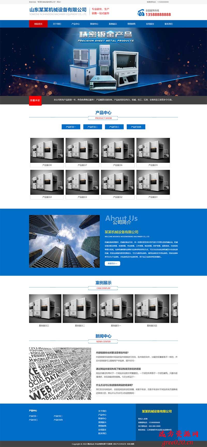 蓝色大气机电机械设备制造类企业网站pbootcms模板