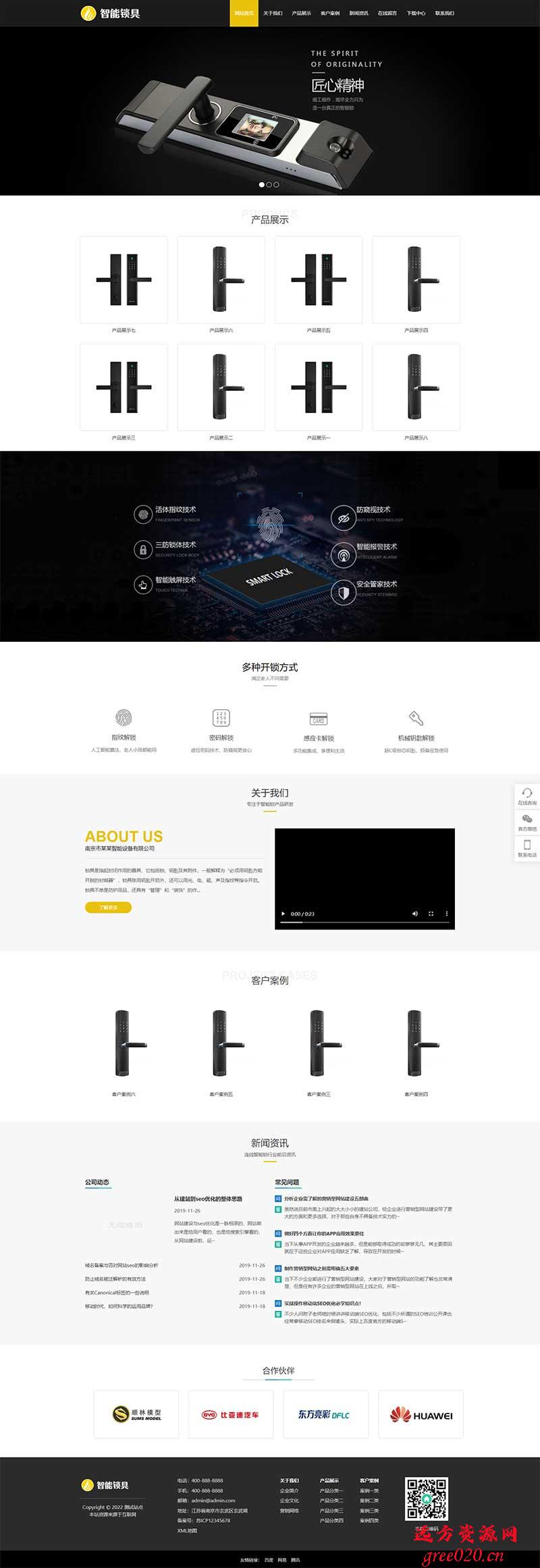 智能锁具电子产品研发类网站pbootcms模板