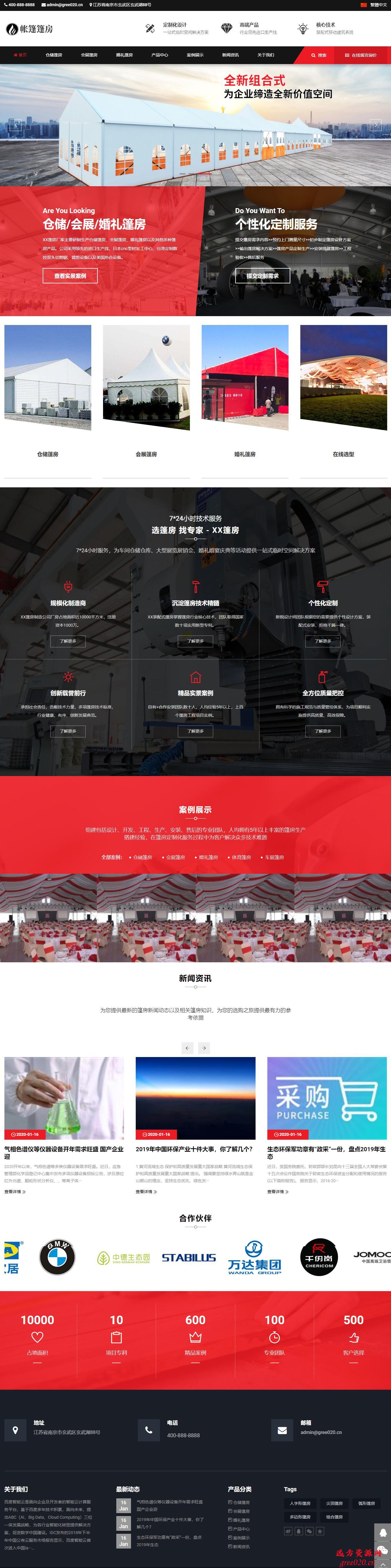 帐篷篷房建筑建材定制设计类网站pbootcms模板