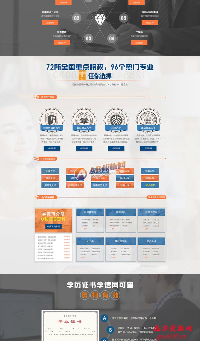 单页面成人教育考试pbootcms模板