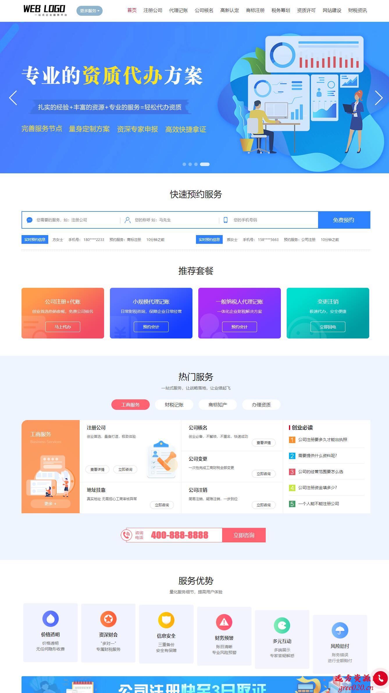 企业记账报税公司注册商务服务网站pbootcms模板