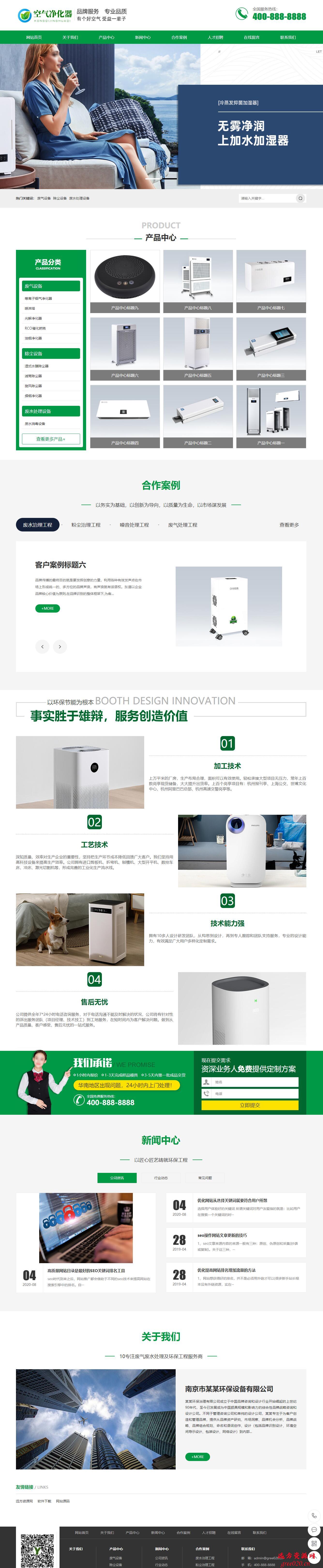 营销型环保节能智能空气净化器网站pbootcms模板