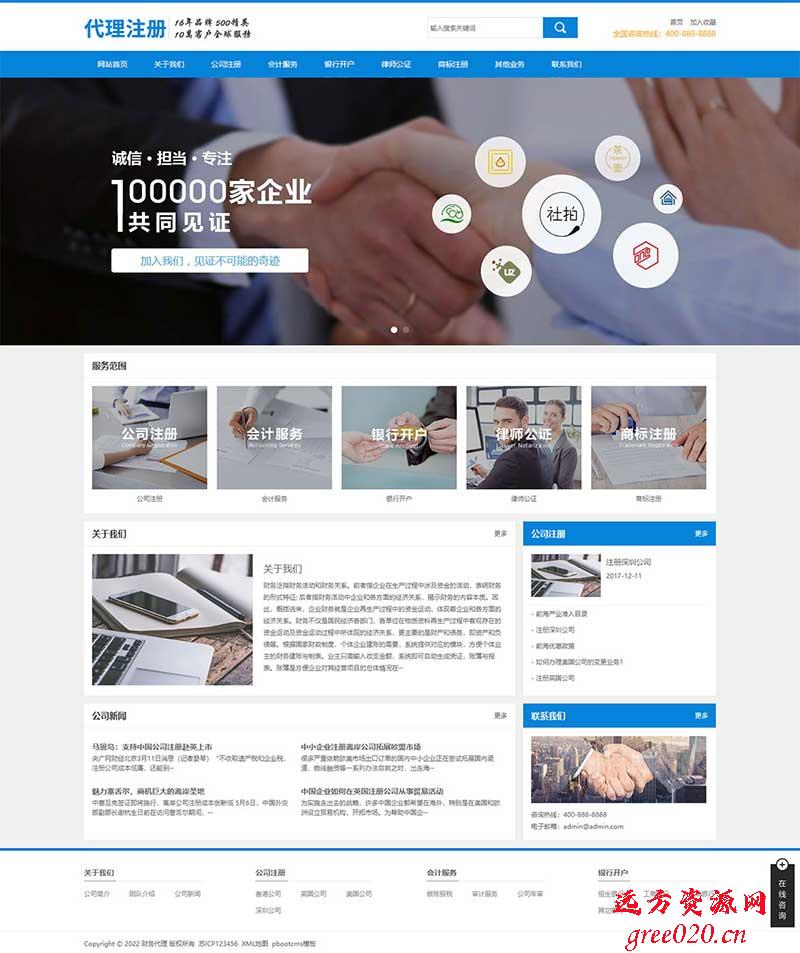 公司注册财务会计类网站pbootcms模板 蓝色律师公证网站源码下载