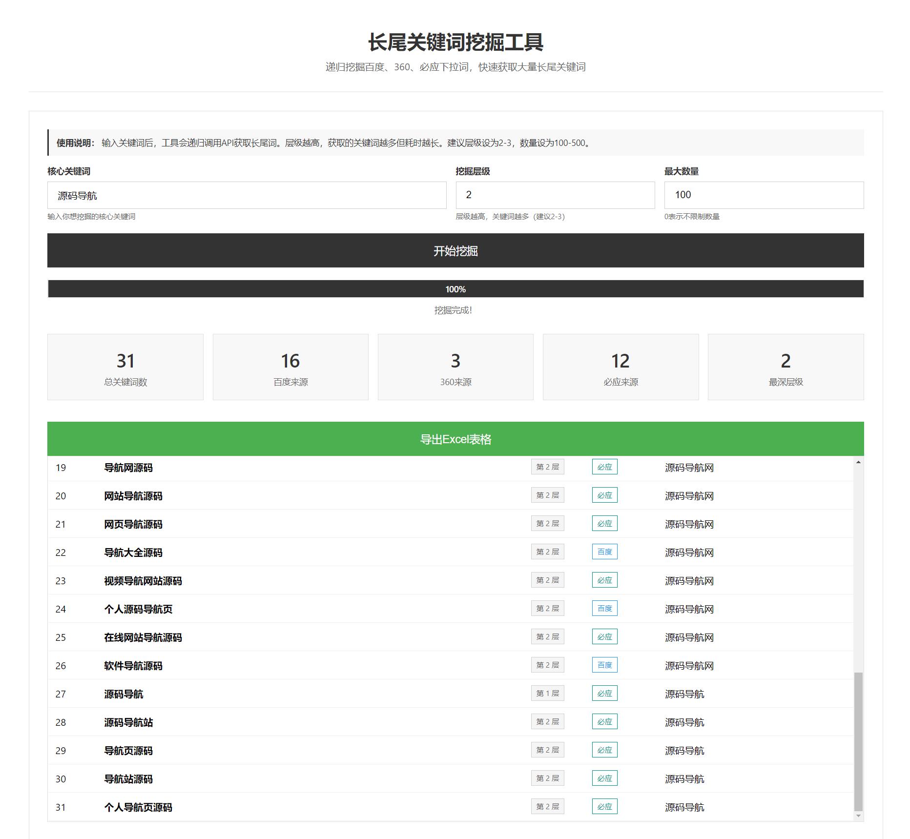 SEO长尾关键词长尾词优化工具网页源码,最好是命中一些长尾关键词,这样可以产生一些好的优化对SEO有正向的帮助,市面上很多的程序都是付费的