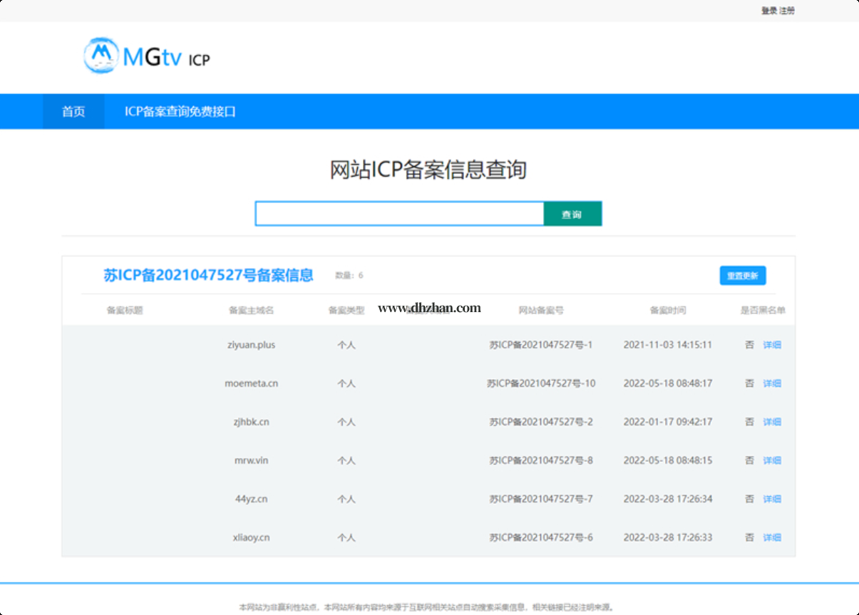ICP 备案查询系统 是一款基于 PHP+MYSQL 开发制作的网站备案查询系统源码,