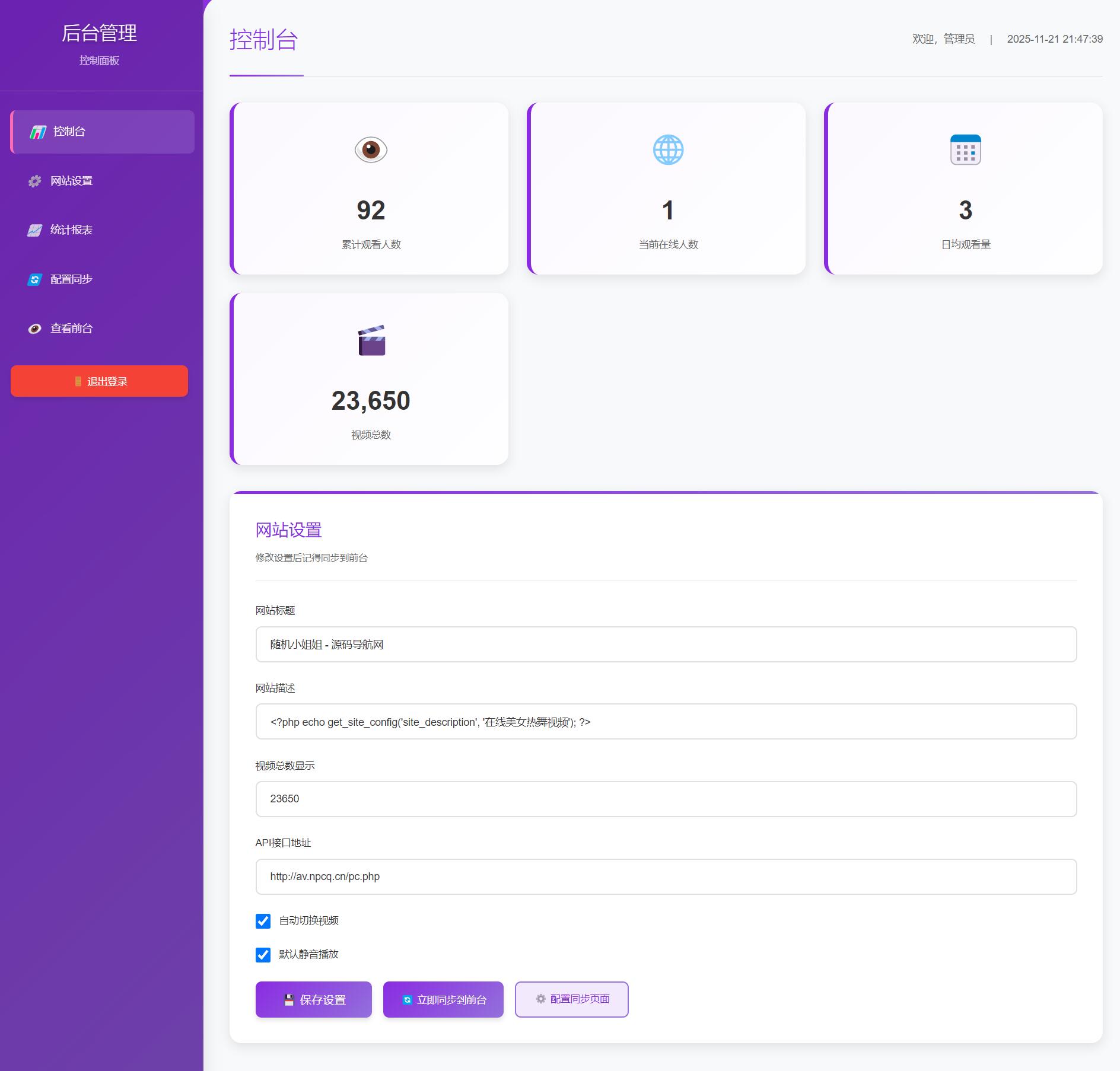 4.0版本更新了后台功能,可以自行修改接口,修改网站信息,后台统计报表等