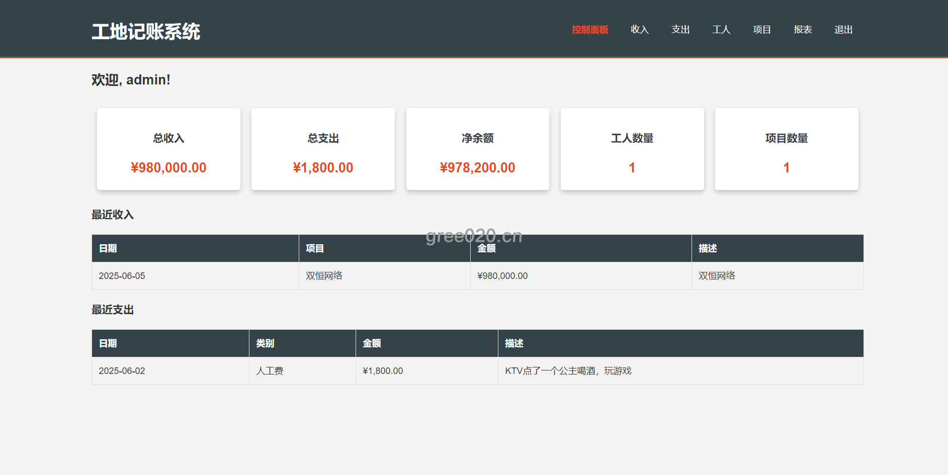 收入/支出双轨记账,精确到分支持项目关联收入(如工程款)支出分类管理(材料/人工/设备等8+类别)实时净收益计算(总收入 – 总支出)工人管理完整工人档案(姓名/电话/身份证/职位)日工资标准记录