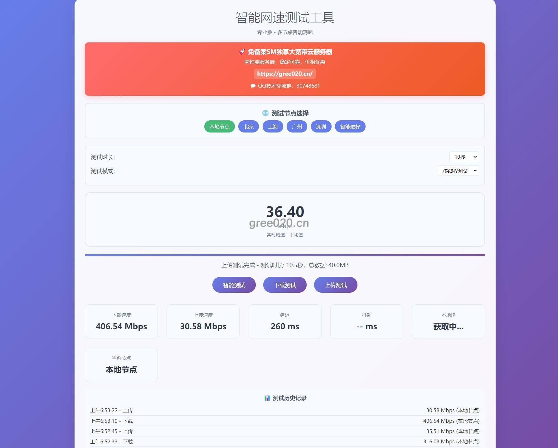 一个功能强大的PHP网速测试工具,支持多节点智能测速、实时监控和详细统计分析