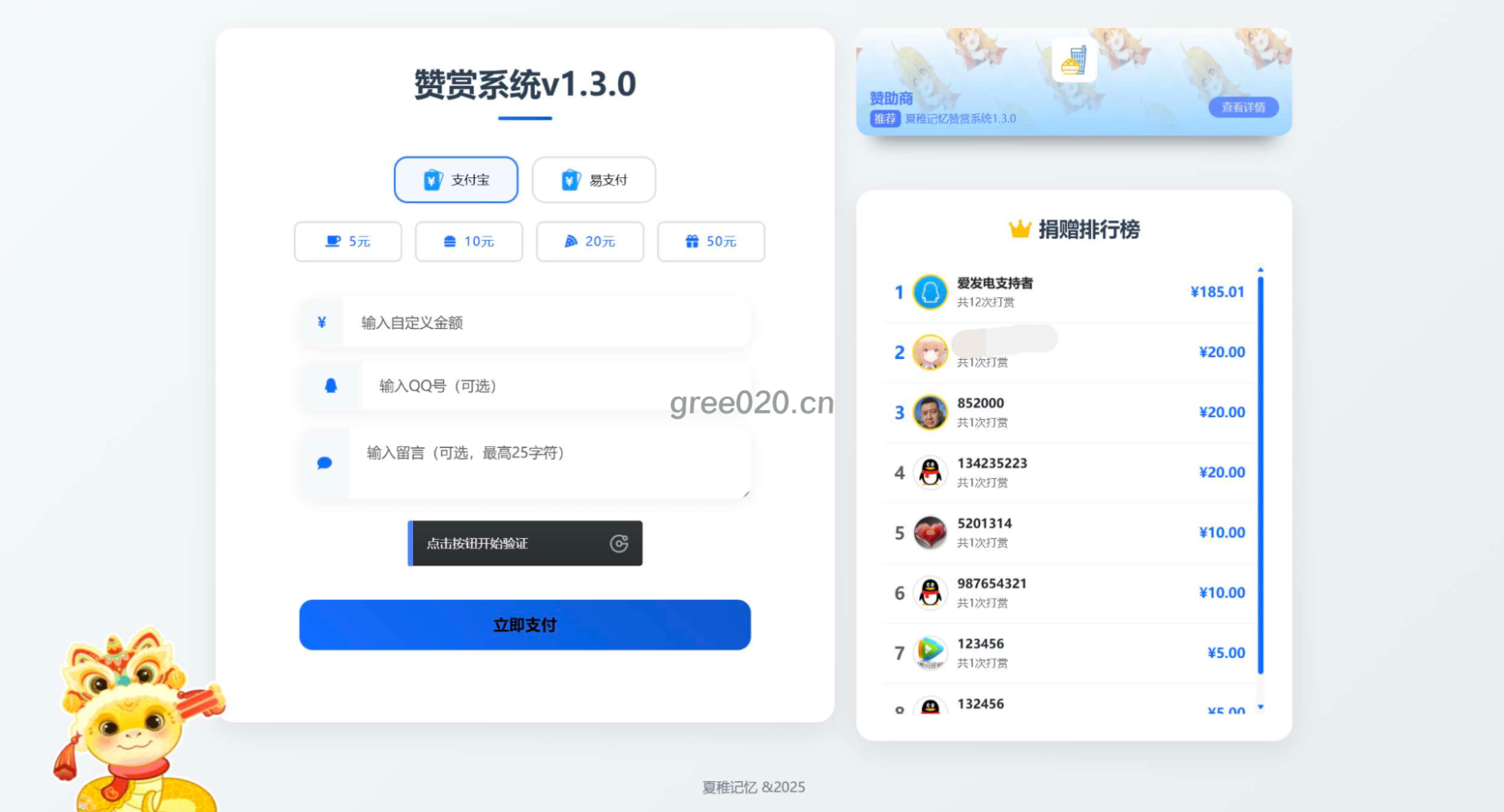 3.新增留言列表,可看到系统交易号,金额,QQ,留言内容