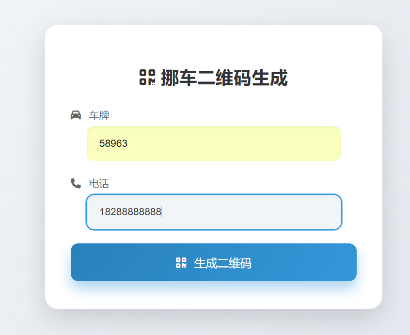 输入信息用户可以输入车牌号码和手机号码,作为生成挪车二维码的必要信息