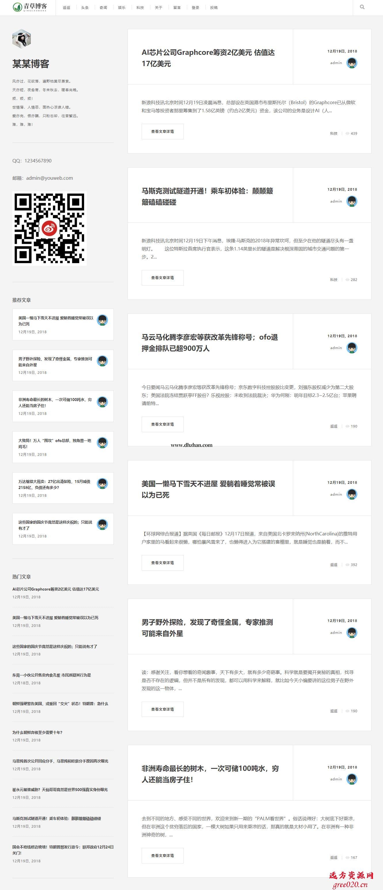 极简个人博客自媒体类网站模板