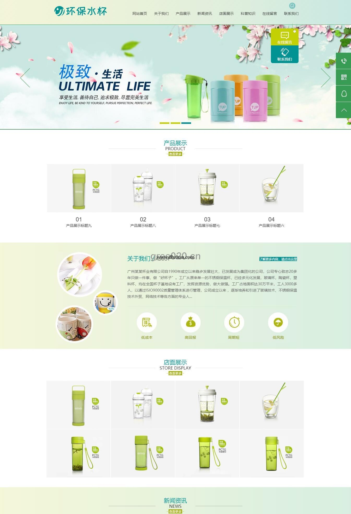 环保塑料水杯纸杯类网站模板