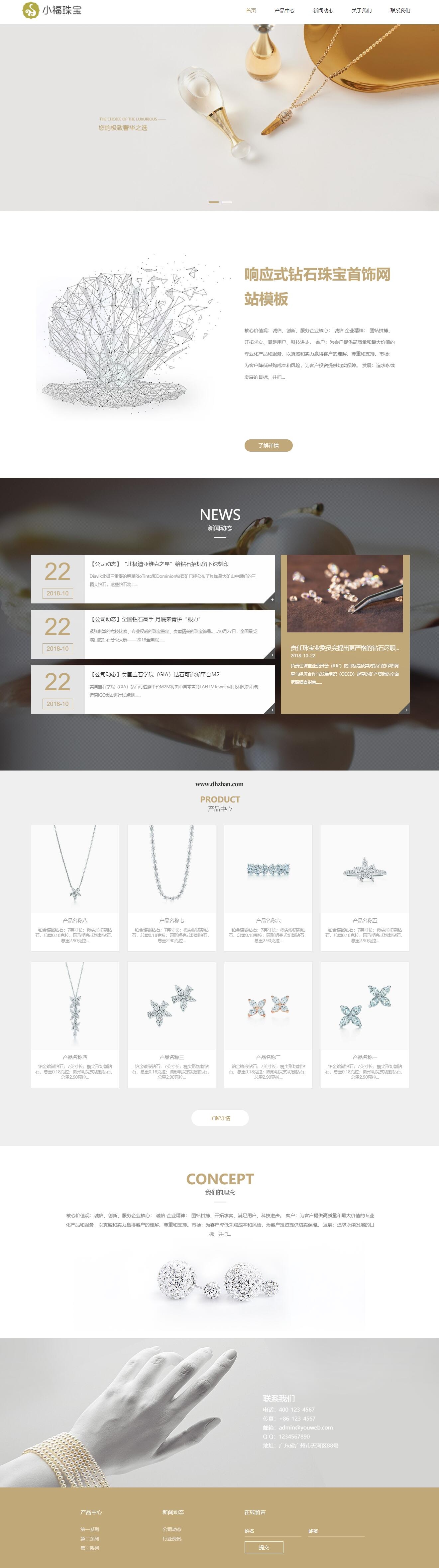 钻石珠宝首饰网站模板,奢侈品网站源码下载
