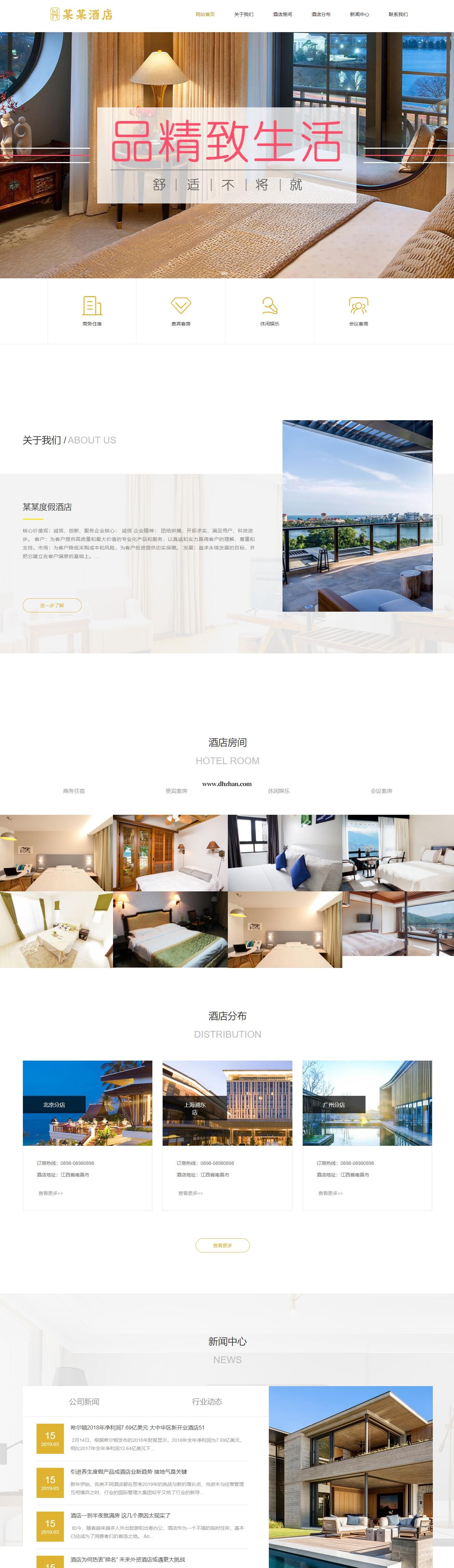 度假酒店商务客房网站模板,度假客房类网站源码下载