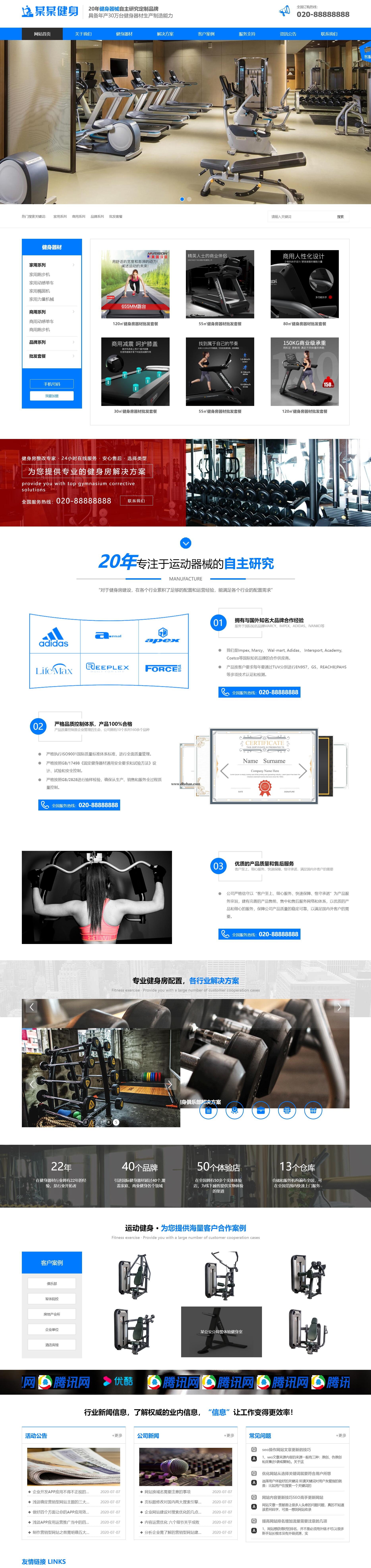 营销型运动健身器械网站模板,运动器具网站源码下载