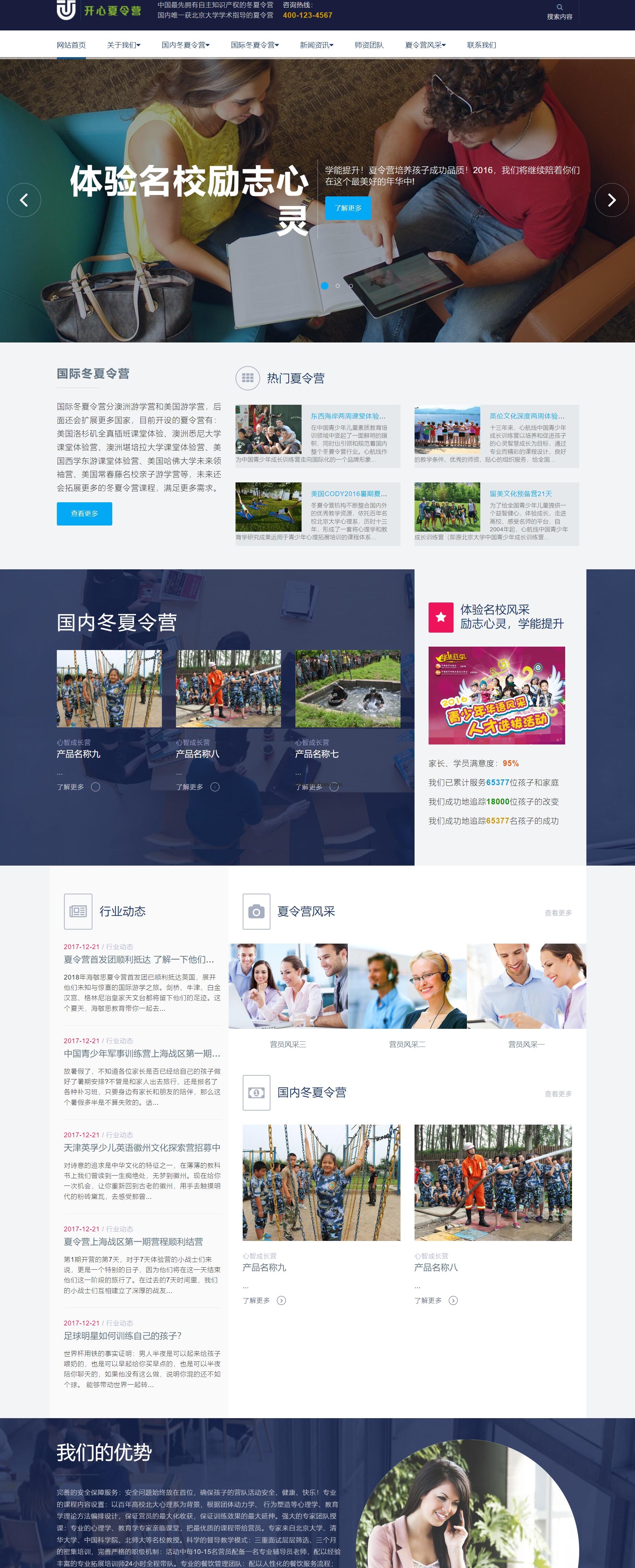 青少年成长训练营培训网站模板,培训机构类企业网站源码下载