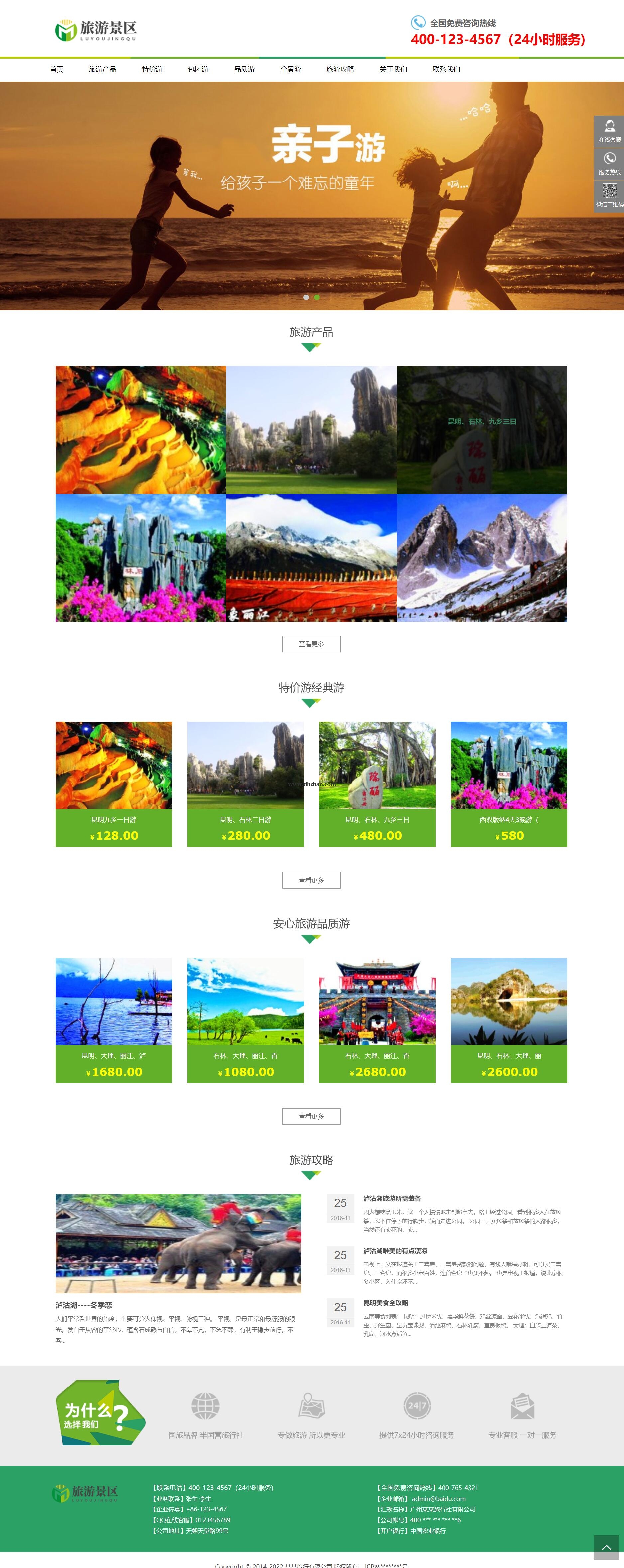 旅游景区旅行网站模板,旅游服务网站源码下载