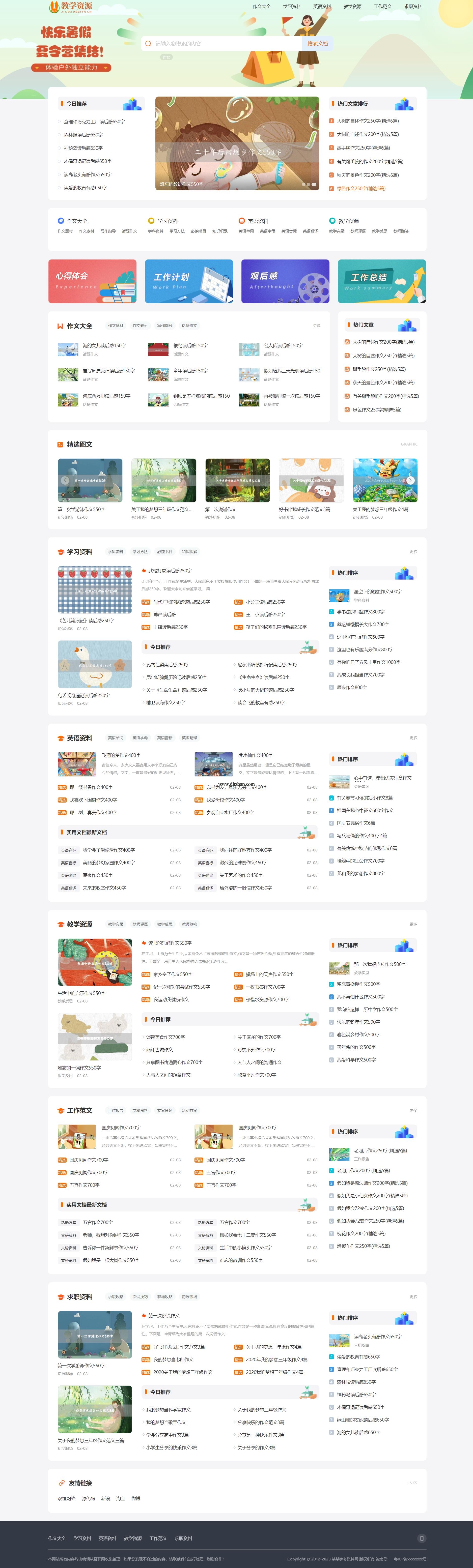 工作范文网站模板,作文学习参考资料网站源码下载