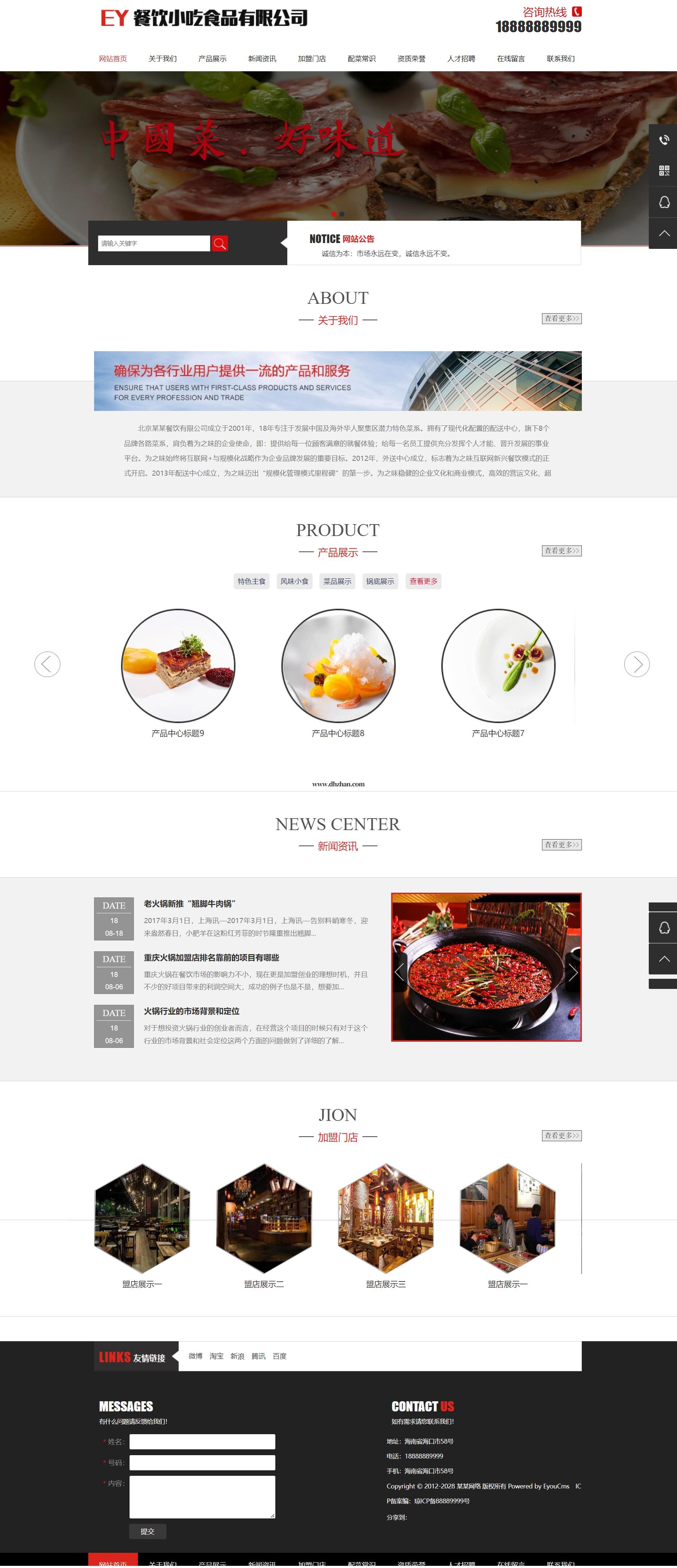 餐饮小吃类网站模板,食品类企业网站源码下载