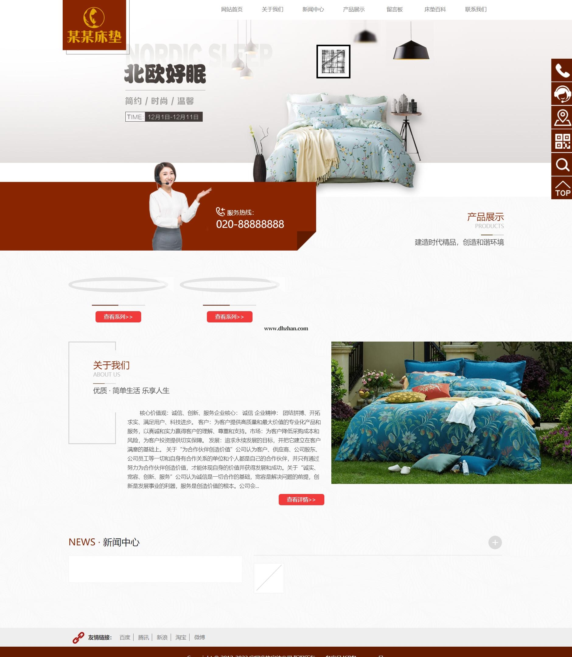 家居床垫家纺产品网站模板