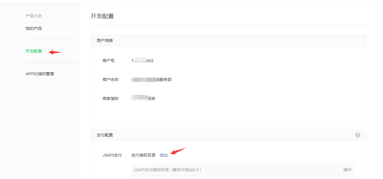 7.点击左侧的“开发配置-支付配置-添加授权目录”,设置一个授权目录为http(s)://您的域名/member/