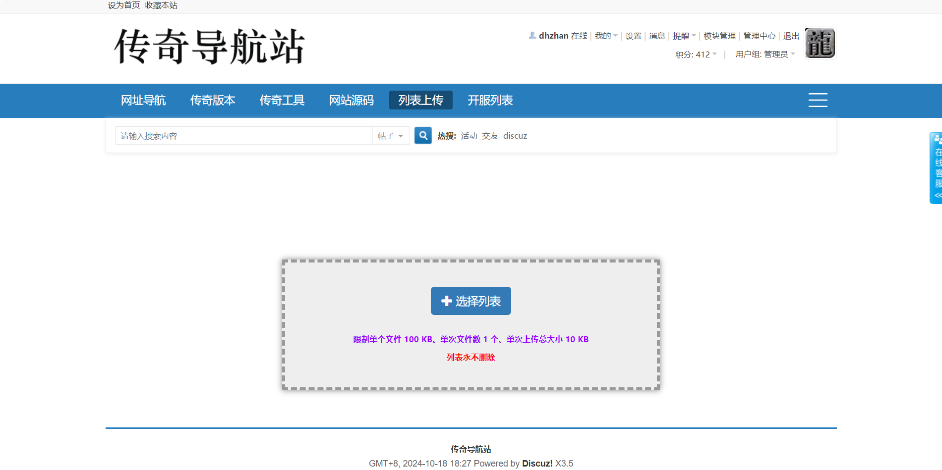功能:导航,工具下载,版本库,空间列表,开服列表