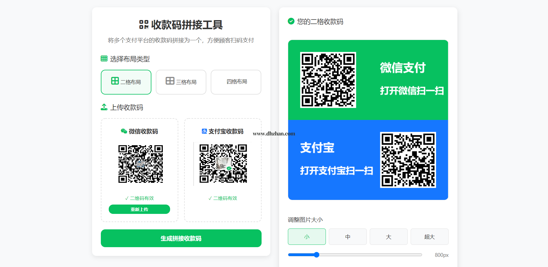 收款码拼接工具合三合一源码,一款支付宝和微信还有云闪付合三为一的工具,非常好用软件是离线版本,双击html文件,用浏览器打开软件。上传相应二维码,然后点生成,在右侧就可拼接出我们需要的二维码。如果你有其他的支付码,也可以使用三格布局或者四格布局。生成后可以调整图片大小,也可以下载到本地。